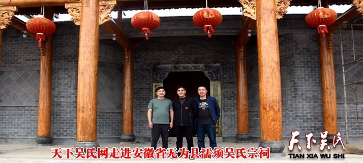 据吴永华宗亲介绍,正在修建的“吴氏宗祠”由安徽省无为县濡须吴氏(穀诒堂)宗亲理事会于2016年4月12日成立并启动修谱活动。该吴氏宗祠本着广泛宣传、群策群力、深入挖掘、智者献智、能者献才、富者献款、壮者出力的宗旨,初步预算总投资200多万元。届时将邀请各地宗亲前往正式参加落成典礼。