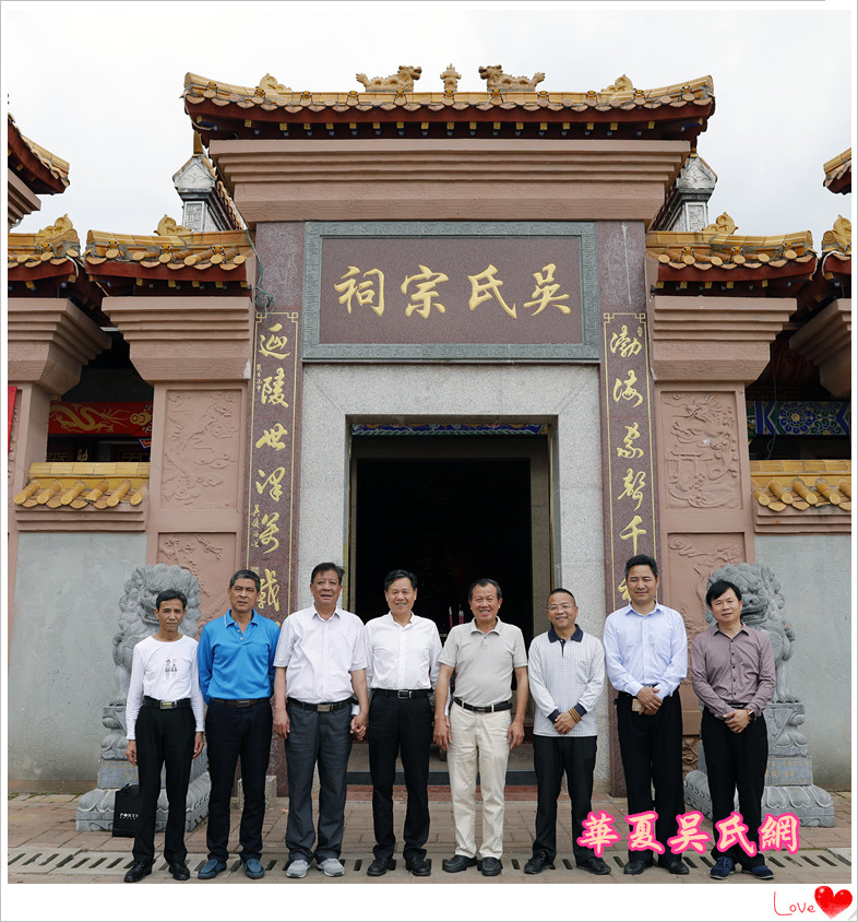 4月13日--厦门吴氏宗亲会 吴国荣会长(左四)在南康百家姓和谐城主殿前与江西省、赣州市、南康区部分宗亲的合影留念