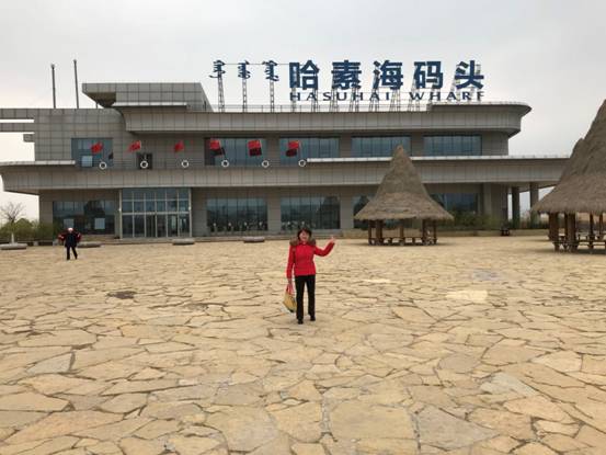 内蒙是一个干旱缺水的内陆地区,那来的海呢?游人带着疑虑往前走,经过二小时的车程,我们抵达了哈素海码头,在码头上向对海望去,天地相连望不到边。导游给我们买的是小火车票而不是船票,更让我们不可理解。而后导游向我们解释:因“哈素海”面积太大,有五个杭州的西湖面积那样大,占地100平方公里,坐小火车绕一圈也要一个多小时,如果坐船走一圈则需要一天的时间。为了让尊贵的广西客人更好地了解哈素海的人文风景,我们选择坐小火车。“沿海”有10个景点,我们重点参观“天鹅湖”,看圈养的白天鹅、黑天鹅。一路上看到“海面上”有许多水鸟和野鸭在游戈。不远处还看到《成吉思汗圣主坛》雄伟壮观的大型的英雄群像,圣主坛前面有两排各7位巨大威武的铜制骑士守护着,似乎在领命征战入侵的民族与部落。在圣主坛的后面是一片和平的田园风光,有很多与实物一样大小的铜制的马、牛、骆驼、羊群等动物在草地上自由自在地吃草和悠闲地生活着。这幅临战状态和田园牧歌的画面告诉人们幸福的宁静的和平生活是要有强大的军队和国防力量来保护的。另一层的教育意义是让蒙古人的子孙后代不要忘记成吉思汗是他们的先祖,也是华夏文明的组成部份。成吉思汗的孙子“勿必烈”是中国元朝的开国王帝,历时97年,与中华民族有着根深蒂固的联系。