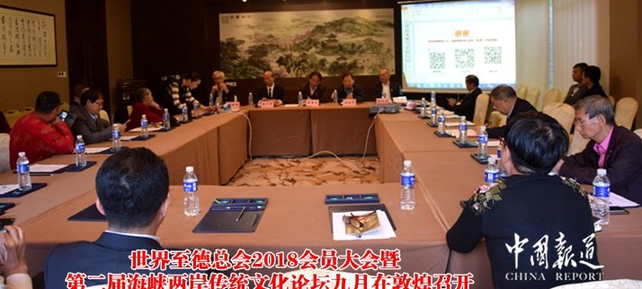 今年九月份,中国敦煌第三届文博会期间,我们又将举办世界至德2018年会员大会暨第二届“海峡两岸传统文化高峰论坛”,我们认为中华传统文化是两岸同胞的“根”和“魂”,两岸同根同源,同种同文,都是中华文化的传人。以传承中华传统文化做为切入主题,在敦煌举办第二届“海峡两岸中华传统文化高峰论坛”,通过论坛促进两岸同胞心灵契合,使中华传统优秀文化植根在两岸同胞内心深处,阐发中华文化的时代内涵,连结两岸同胞的精神纽带,增强中华文化自信、中华民族自信。共同推进两岸文化交流、经济交流,用中华传统文化作为联系纽带,持续推动各领域交流合作,不断增进两岸同胞福祉和亲情,早日实现祖国和平统一千秋伟业。