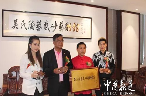 中国报道(吴蜀丰 江苏报道马云曾说:我比总统还忙,却没有总统的权利!其实比总统还忙的父母们也是这样说,“我比总统还忙”,诚然,中国第五代紫砂传人吴海龙近两年也是“比总统还忙”,都忙些啥?吴海龙整天忙着推出自己的紫砂壶精品杰作;也忙于各类社会公益活动及大型艺术学术交流,最近一次在吴氏宗亲总会组织的泰伯、仲雍的祭祖仪式上见到了吴海龙先生的身影!吴海龙先生是江苏宜兴人,出身于陶艺世家,自幼受父亲吴余清的熏陶对紫砂壶情有独衷,对家传的制壶工艺有浓厚兴趣。