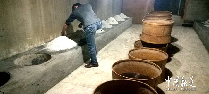 岩茶传统手工制茶工艺做青 做青阶段是岩茶优异内质得以表现、形成良好色香味及"绿叶红镶边"的关键环节。做青原则是:摇转次数,先少后多;用力程度,先轻后重;做青的间隔时间,先短后长。关键还要看品种、天气、青叶变化情况而灵活掌握,俗称“看天做青,看青做青”。第一次摇青只要略摇几下就行了,后视情况适时再摇。摇青时双手并用,左右交替高低,这样才能把茶青摆成蓬起呈螺旋状,有利茶叶互相碰撞,促进"走水。尤其是后期摇青更是如此。将两筛茶青并成一筛后,并略多、略重摇几下,然后置放晾青架上。目的是便于做青,调控走水速度。做手,俗叫“下手”,是青叶走水、变化较慢的情况下采用的手法。方法是把水筛边支于晾青架柱上,用肚皮顶住,双手各轻拂一把茶青互相轻碰,后把青叶收拢,以促进走水。“二并一”后约一两个时辰,进行再次并筛,视情况三并一,或四并三,重摇后置于晾青架上。围水 有的茶青走水过多或过快时,办法是略摇后,堆成凹型,以此法控制其走水速度。赶水茶青水走不够透或缓慢时,将茶青平摊青筛上,以促进走水。重揺茶青做到后期,即将进入炒揉前,要视茶青状态,进行适当重揺。翻拌茶青在炒之前要倒入茶湖中,进行翻抖,后堆放一会儿,时间长短要看茶青状况。目的在使茶青进一步均匀发酵。装青入篓 把堆放荼湖中的茶青装入软篓或青篮。有的还要压紧。一般来说,一拨茶至少要动四至六遍手,时长约四至六个时辰(即八至十二小时)。总的要视茶青情况而定。扛青入炒揉间茶青装好后,由“带山”扛到炒揉间炒揉。做青完成后就是进行炒青和揉茶,这可是需要相当娴熟的手法才能做出成品好的茶,在传统的制茶工艺里,这一步骤是相当需要经验的。( 一枞公众号)