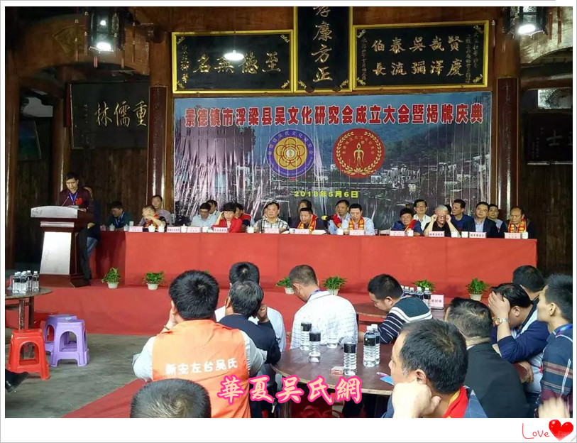 2018年5月6日,江西省景德镇浮梁吴文化研究会在瑶里古镇举行了揭牌仪式。江西吴氏文史研究会会长吴广凡率总会各副会长、以及婺源县、上饶县、鄱阳县、余干县等地会长到场祝贺。贵州、湖南、安徽等地以及浮梁县、乐平市、昌江区及市区的吴氏代表;浮梁县政府有关部门及一批德高望重的老领导,共有500多吴氏宗亲参加活动。