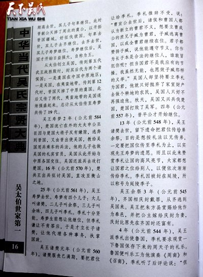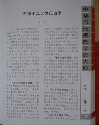 本期推荐文章:《吴泰伯世家第一》司马迁著,吴洪激译。《至徳十二大姓由来》作者吴华。《吴氏考》作者吴焕。(未完待续)