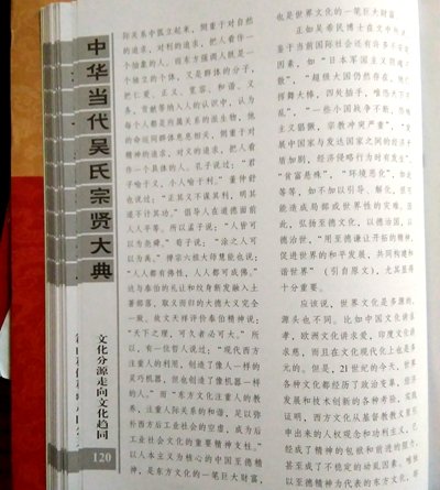 天下吴氏讯(吴蜀丰)【编者按】本期推荐文章:《谈家谱》。《姓族家谱和宗典人籍由私修私藏走向公开》作者吴洪激。《至德论与文化强国》作者吴洪激。《文化分源走向文化趋同》作者吴洪激。