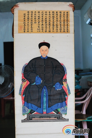 文昌市铺前镇中台村吴氏先祖也出过读书人和当官者,图为清代一位国学生出身者“吴明卿”的画像。