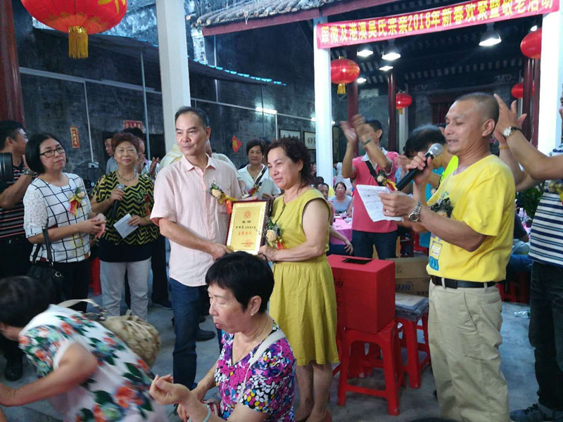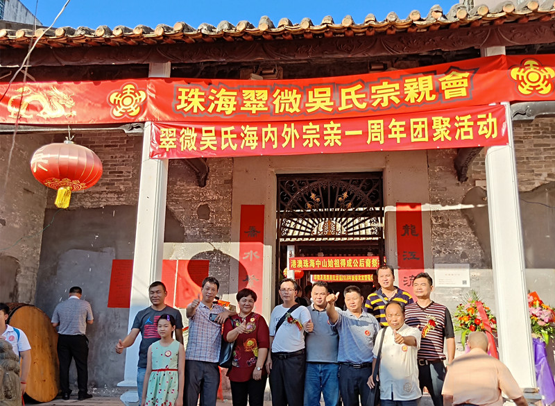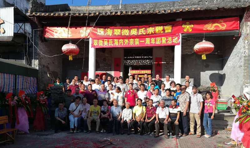 珠海翠微吴氏宗亲总会成立一周年庆典在珠海市香洲区翠微榕斋吴公祠堂举行,参加这次一周年庆典的吴氏宗亲会代表及吴氏宗亲共有500多名。下午六点多,庆典活动正式开始,庆典活动议程有:一是珠海翠微吴氏宗亲总会领导在翠微榕斋吴公祠向祖先拜祭。二是对当选为珠海翠微吴氏宗亲总会创始会长、永远荣誉会长、荣誉会长、名誉会长、会长、常务副会长、副会长、秘书长、副秘书长、监事长、理事、顾问进行颁发当选证书。三是宣读捐款的吴氏宗亲,广东珠三角吴氏宗亲总会常务副会长吴占标捐款1000元给翠微榕斋吴公祠。四是,晚宴期间,除了每台每位宗亲都有奖品外,翠微吴氏宗亲总会还举行了现场抽奖活动,现场抽奖礼品有现金、有实物,丰富多彩。