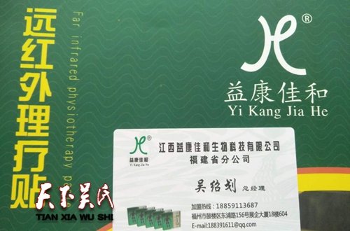 中国报道讯(吴蜀丰福州报道)21世纪海上丝绸之路博览会暨第二十届海峡两岸经贸交易会22日在福州闭幕,(下称“海交会”)益康佳和膏药在海交会上吸人眼球。据参展商负责人江西益康佳和生物科技有限公司福州省分公司总经理吴绍划介绍,益康佳和膏药由于诸多卖点颇受欢迎。