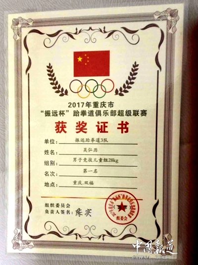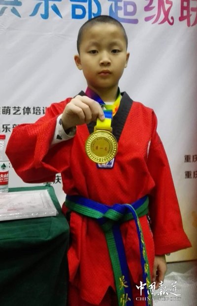 中国报道讯(吴蜀丰 重庆报道)常言道,自古英雄出少年,冰冻三尺非一日之寒,不到10岁的功夫小子吴弘历勤学苦练获“跆拳道冠军”。