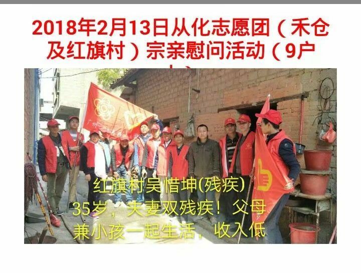 据悉,从化吴氏宗亲志愿团在2017年5月29曰由一群志同道合,充满爱心,正能量的吴氏兄弟组成。是一个家族性公益团体,无偿为吴氏家族服务,奉献爱心,传递温暖,在过去的一年里慰问了二十几户特困,残疾,高龄,孤家寡老人,得到了大家的认可。相信曰后有你们的支持和参与会做得更好,一人力薄,众志成城,赠人玫瑰手有余香,帮助别人也是帮助自己。