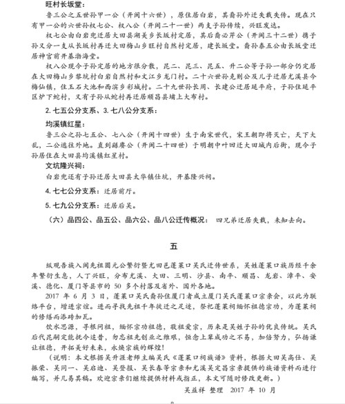 入闽圆元公繁衍暨尤田邑蓬莱口吴氏迁传世系