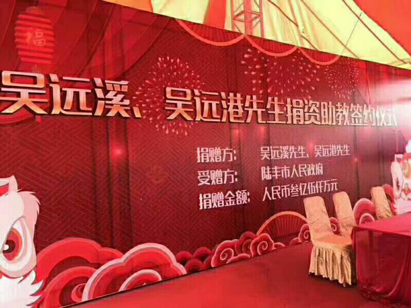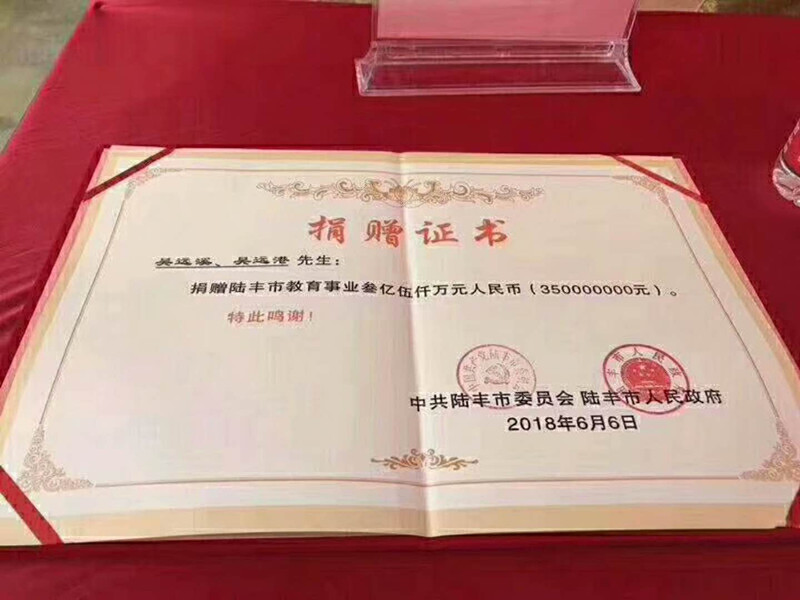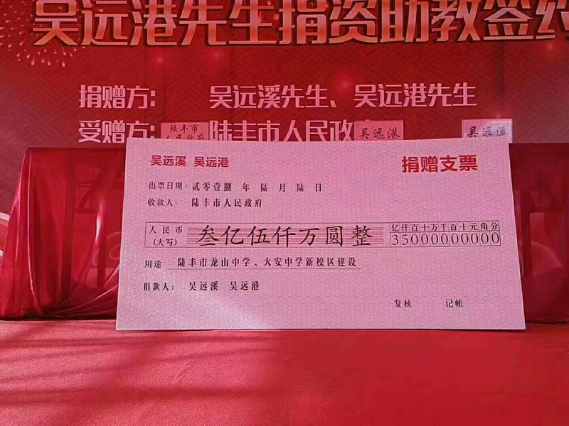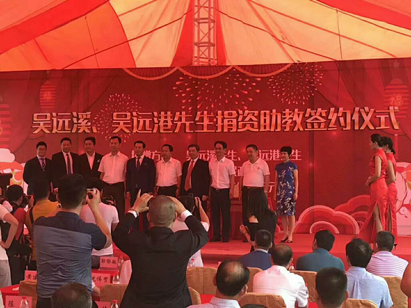 【吴河西 吴裕增来稿】 2018年6月6日,吴远溪、吴远港兄弟捐资助教签约仪式在陆丰市举行。吴远溪、吴远港兄弟是深圳市吴文化交流会荣誉会长、广东两陆吴文化代会长吴远林的亲弟弟,他们这次捐献了三亿伍千万给陆丰市人民政府用于教育事业! 陆丰市委书记邬郁敏,市长许伟明等人出席了捐献仪式。
