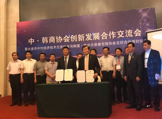 2017年6月9日,韩中日亲善交流协会与中韩商协会创新发展合作交流会暨大连市中外经济技术交流协会举行友好合作签约仪式,在辽宁大连铁路文化宫尚品槐花大会议厅隆重举行。韩国.韩中日亲善交流协会会长吴应准致辞。