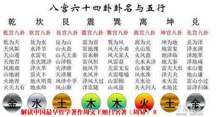 六十四卦卦画排列的特点 唐人孔颖达曾用“二二相偶,非覆即变”来概括六十四卦卦画排列的特点。所谓“二二相偶”,是指《周易》六十四卦两两为对,共三十二对,如乾坤为一对,屯蒙为一对,按顺序依次为对。所谓“非覆即变”,是指《周易》三十二对每一对的卦画不是颠倒,就是相反。覆,颠倒;变,相反,如(屯)倒置为(蒙),(需)倒置为(讼),这是覆。(乾)与(坤)相反,乾六爻全为阳爻,坤六爻全为阴爻,(颐)与(大过)相反,颐上下为阳爻中间四爻为阴爻,大过上下为阴爻,而中间四爻为阳爻,二者卦画完全相反,这就是变。《周易》六十四卦三十二对,有二十八对为“覆”,有四对为“变”,即除了乾坤()、颐大过()、坎离()、中孚小过()变卦外,其它与对皆为覆卦。爻及含义 爻含有三才之道。八卦由三画组成,如乾坤三画象征着天地人,天地人即“三才”,其中下爻代表地,中爻代表人,上爻代表天。六十四卦由八卦相重而成,故六十四卦中也含有三才之道。一卦六爻,初二爻为地,三四爻为人,五上爻为天。爻所处位置代表事物不同阶段 初爻:代表事物开始;二爻:代表事物崭露头角;三爻:代表事物大成;四爻:代表事物进入更高层次;五爻:代表事物成功;上爻:代表事物终极。乾卦比较典型。爻所处位置代表人的身体不同的部分,初爻:代表脚趾(因脚趾在最下);二爻:代表小腿;三爻:代表腰(三爻居中,腰也居中)四爻:代表上身;五爻:代表脸;上爻:头。咸卦、艮卦比较典型,爻所处的位置代表社会不同等级,按照汉人对《周易》的注释,情况如下:初爻在下,代表民;二爻居中,代表君子、卿大夫;三爻在二爻之上,代表诸侯;四爻近五,为近臣;五爻在上居中,为天子;上爻在最上,为宗庙(或太上皇)。爻所处的位置代表不同性质事类 一般说来,二爻五爻居中,以示行中之道(即不偏不倚,不过无不及,古人称为大德),故多荣誉,多有功绩。也就是说,《周易》二五两爻辞多是吉利的。三爻居内卦之上,过中。故多凶险。四爻近五爻,五爻为天子,故近天子之人,多恐惧,即所谓伴君如伴虎。初爻代表事未成,上爻以示事已过。爻位 爻所居的位置叫爻位。爻位有一定的规律:初为阳位,二为阴位,三为阳位,四为阴位,五为阳位,上为阴位,即奇为阳位,偶为阴位,初、三、五为阳位,二、四、上为阴位。在《周易》中,阴阳位与阴阳爻并非一一对应,即阴爻并非居阴位,阳爻亦并非居阳位。而多为阴阳杂居,如阳居阴位,阴居阳位,故《周易》中有当位、不当位(或得位、失位)问题。一般说来,阳居阳位,阴居阴位为当位。阳居阴位,阴居阳位为失位。在《周易》六十四卦中,全当位者为既济卦,全失位者为未济卦。