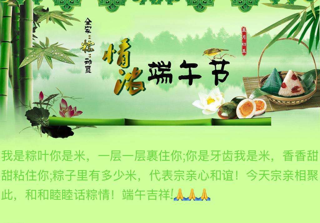 端午节是弘扬敬老爱老的中华民族传统美德。尊老爱老彰显人性之美、家庭之美、和谐之美。老吾老及人之老。让一个个小小的举动支撑起闪光的美德;让一个个默默的美德支撑起深厚的修养;在关怀老宗亲的基础上,也将爱心传递到我们身边的每个角落,让我们的社会更加和谐!