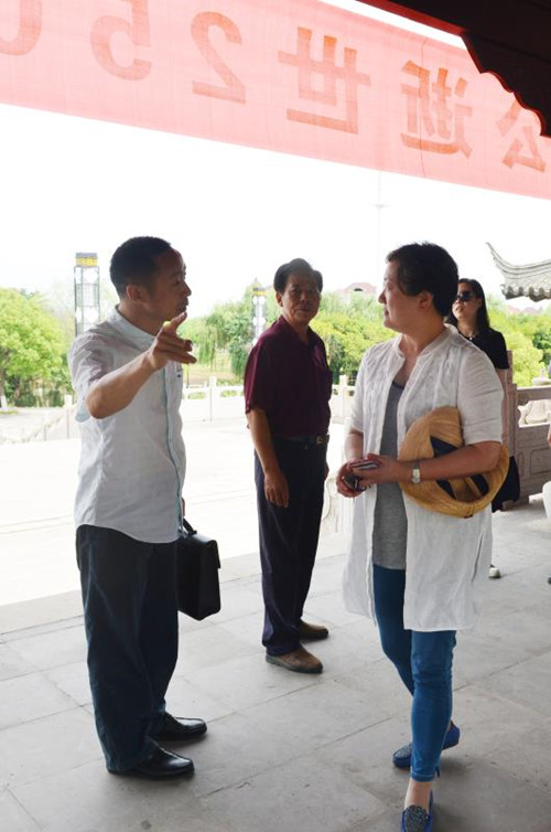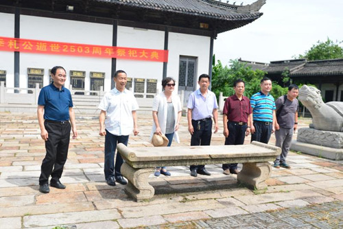 二O一八年六月二十六日下午,常州市天宁区人民政府管黎芳副区长、天宁区教育文体局戴霞副局长、郑陆镇人民政府黄佳清副镇长和天宁区委宣传部邰怡、区政府办公室钱璐一行,赴江阴瞻仰季子祠、季子墓并与延陵季子宗亲会荣誉会长吴林华、会长吴才兴等举行座谈。