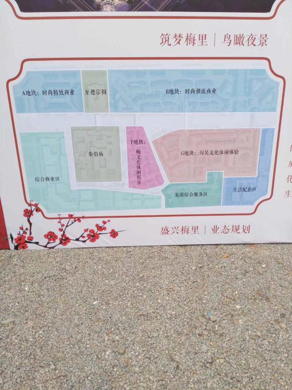 地块所处的梅村区域,为吴文化发源地,素有“梅里古都”之称,早有“泰伯奔吴”之传说,传说是商末周初吴国之都。区域内贯穿伯渎河,有新梅广场和梅里古镇景区,景区内有泰伯庙、至德宗祠等古迹,还有古镇牌楼、梅林、钟鼓亭、照壁和铜鼎等景观,及一座梅村二胡文化园,人文气息浓郁。