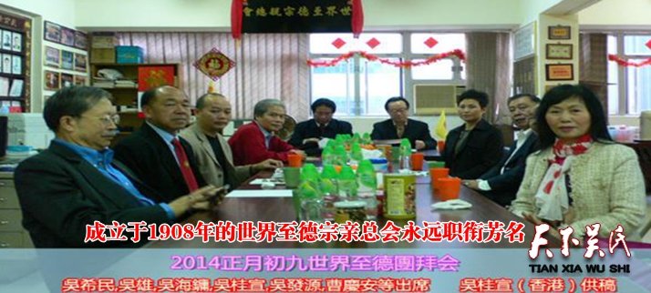 中国历史上,有关周太王古公亶父长子太伯三让天下,与二弟仲雍出奔江南,使三弟季历(周王季)继承王位而振兴周族、共昌西周的史实,一直被传为佳话。太伯(泰伯)、仲雍后来在蛮荒之地的江南建立了吴国,成为吴氏始祖。2500多年来,孔子曾盛赞吴氏始祖太伯为"至德也已矣!"从此,吴氏后裔及其分支均称为至德宗亲,吴姓的堂号为"至德堂"、"吴郡堂"等。周族始祖为后稷,传为姜女原履巨人足迹而生,始姓姬。姬姓周族在传承过程中,特别是因周王室分封,分别产生了吴、周、蔡、曹、辛、柯、洪、江、翁、方、龚、汪等12姓,被称为至德宗亲12姓。华人中世界各国吴、周、蔡、翁、曹五姓联合济阳堂(辛、柯、蔡)及六桂堂(洪、方、翁、龚、汪)各姓的世界性联宗组织。