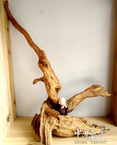 吴府的主人吴汉帝告诉记者,除了种茶和吴氏商会的事,根雕是他的最爱之一,吴汉帝说根雕是中国传统雕刻艺术之一,是以树根(包括树身、树瘤竹根等)的自生形态及畸变形态为艺术创作对象,通过构思立意、艺术加工及工艺处理,创作出人物、动物、器物等艺术形象作品。