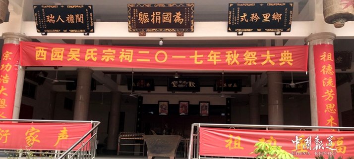 中国报道讯(吴蜀丰福建福州报道 特约采编 吴建法)【编者按】“延陵望族扬四海;罗峰世家发西园。”“万里兴业有先祖垂范,千金修祠报列宗隆恩。”“面对金鸡桑梓千秋欢聚,背临罗汉子孙万代安居。”因闻名天下的中国名祠、福建省十大名祠之一福州西园村吴氏宗祠,近日吸引来自浙江、福建南平、安溪等地吴氏宗亲前去仰望。
