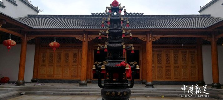 已涂刷完清漆的宗祠门梁柱、装修好的两边回廊、中殿及院落、后殿大厅。粉墙黛瓦的微式建筑风格,建筑面积近千平米。虽说是三进,可那庄严、精致仍不失为一大特色,合抱粗的松木柱梁,外门两旁徴派特色的砖雕技术与根雕之乡的工艺完美结合,均来自永华宗长的高超技术监理和指导。二殿院落中间,摆放着铸有芜湖铸造字样的,吴家女婿魏氏捐赠的两米多高的香炉,衬托着中殿更加气势恢宏。两边回廊布局相当合理、玲珑小巧,给人以耳目一新之感。拜访组一行,边走边看,不时驻足询问。陪同的宗亲对设计投标、材料采购、施工、质量、进度、安全、资金筹措等一一作了介绍。一千平米的建筑面积,足足花了40多分钟。