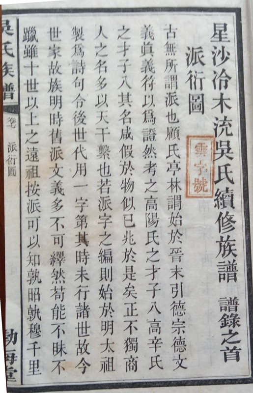 吴思敬公,字元若,生于元朝至正十九年(1359年),殁于明朝宣德十年(1435年),享年77岁。吴思敬夫人王氏生三子,长子智振,派衍出了金井房;次子智仁,派衍出了大路房;三子智聪,派衍出了柳冲房。经开宏公祖孙四代,长沙星沙冷木吴氏的五房支脉清晰地展现了出来。