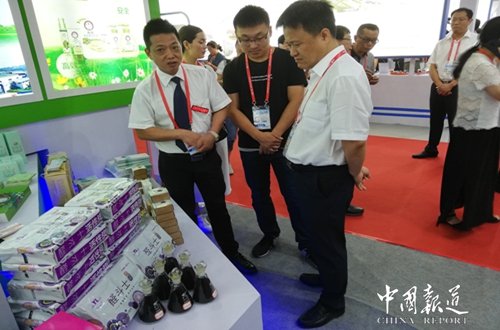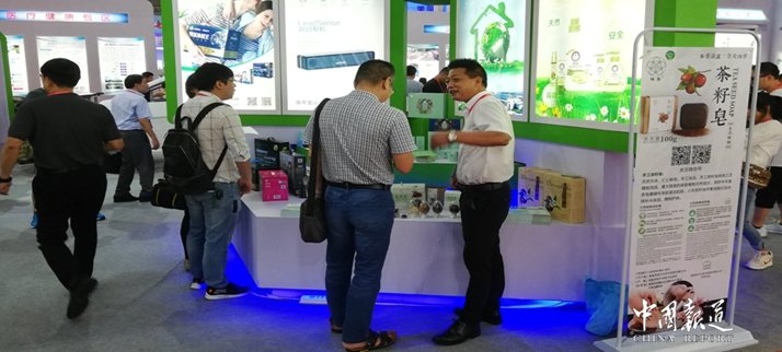 中国报道讯(吴蜀丰福建报道)6月18日,第十六届中国.海峡项目成果交易会在榕开幕,本届南平馆以“绿色创新。赶超发展”为主题,以“清新福建。生态南平。山水武夷”为主要创新。客商对南平馆天然茶籽系列产品产生浓厚兴趣。