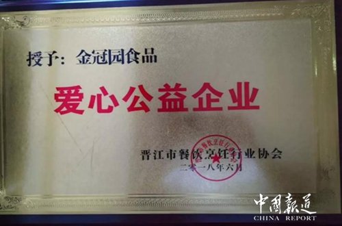 中国驰名商标金冠园集团获爱心公益企业殊荣