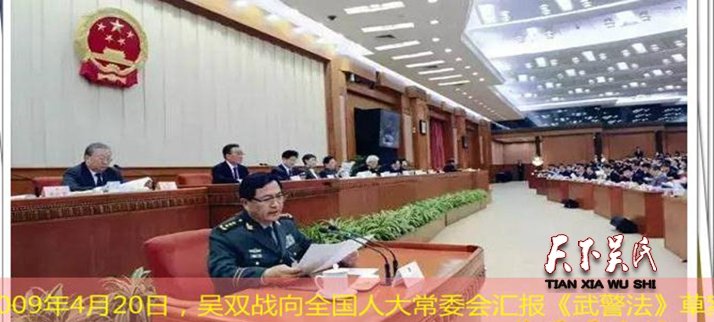 2009年8月27日,全国人大常委会审议通过了《中华人民共和国人民武装警察法》。这部法律的颁布施行,标志着武警部队建设和发展进入一个新阶段。近年来,武警部队在维护社会稳定方面的任务越来越重,用兵频率越来越高,情况处置难度越来越大,这些都迫切要求提供有力的法律保障。2003年,武警部队成立武警法起草领导小组及办公室,认真调研,撰写立法报告,拟制起草方案,经过6年多的努力,基本完成了草案的起草工作。“制定颁布武警法,是落实依法治国方略、体现国家法制权威的重要举措。”吴双战说。