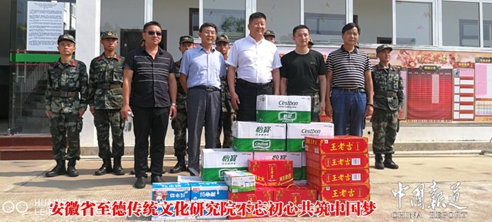 中国报道讯(吴蜀丰安徽报道)为庆祝中国人民解放军建军91周年,日前,安徽至德传统文化研究院在理事长、院长吴伍兵的带领下,顶着烈日,冒着近40℃的高温怀着对部队、对军人的无限崇敬的心情来到安徽武警安庆支队执行3中队,看望慰问了在那里担负着守卫、警戒及训练任务的官兵。炎炎酷暑给他们送去了慰问品带去了丝丝甘甜和清凉。