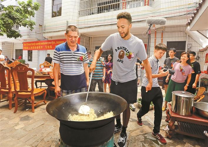 这次回到深圳平湖新木新村,凯尔·安德森就像刘姥姥进了大观园,对什么都感到新奇有趣。2米06的大个子,不停地与亲人们握手致意,脸上一直挂着标志性的微笑。