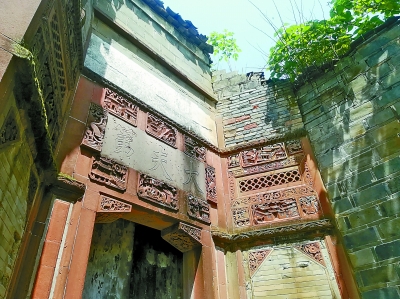 整座祠堂木梁、门头、雀替上都有雕花,一些残存的遗留红石上也有古老的雕饰。在一块遗存的石匾上,清晰可见“义门世家”四字。