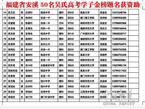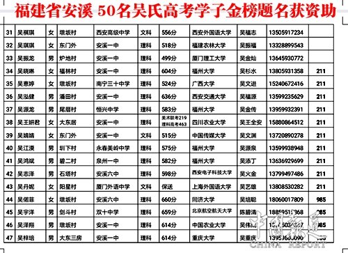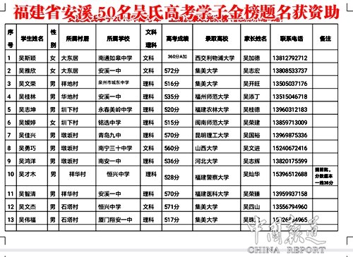 福建省安溪 50名吴氏高考学子金榜题名获资助