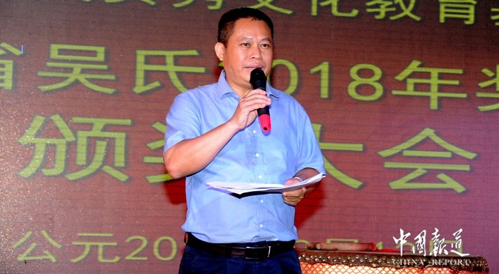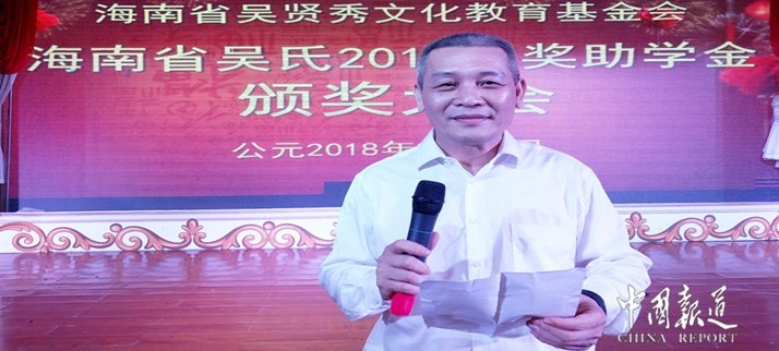 据海南省吴贤秀文化教育基金会秘书长吴开河介绍,海南省吴贤秀文化教育基金会今年提供了五十多万元助力吴氏后代教育事业,推动全社会关心和支持下一代的教育,同时,他衷心希望各位学子珍惜大学美好时光,不辜负宗亲的殷切期望努力学习,做一个有理想,有道德,有知识,有抱负的当代好青年,应敢于担当,报效祖国与家乡。颁奖大会上,由今年考上清华大学学生吴国昊发言。作为吴氏家族的一员他深感荣幸,获得奖学金也让他感受到了整个家族与全社会的关注与帮助,希望今年即将走进大学的弟弟妹妹们,能够心存感恩,关心他人,把吴氏爱心像奥运圣火般代代相传。海南省吴氏2018年奖助学金颁奖大会由海南省吴贤秀文化教育基金会主办。