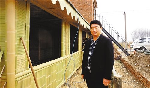 吴世平在农业生态园生态小屋外。 记者 戴娟 摄