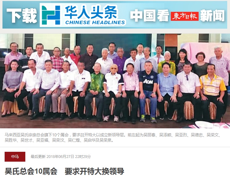 马来西亚吴氏宗亲总会10个属会,要求总会召开特大以成立新领导层,拨乱反正。