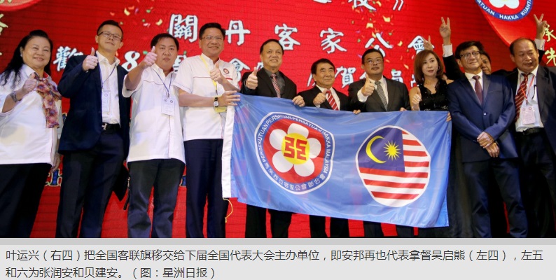 2018年8月19日报道 马来西亚客家公会联合会举行会旗换届移交仪式,吴启熊任副总会长