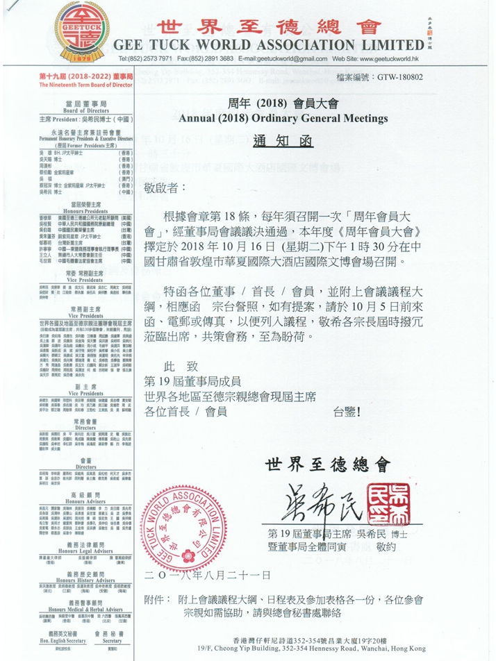 感謝大家,會議時間開得較長,內容很透徹,絲路幫扶公益基金是一項大工程,相信董事局會有新慨念加入,和平發展,讓中華優秀文化引領下,得到豐厚的回報。謝謝大家。註:本會議紀錄如有修正,請於發信日 14 天內書面通知總會秘書處。