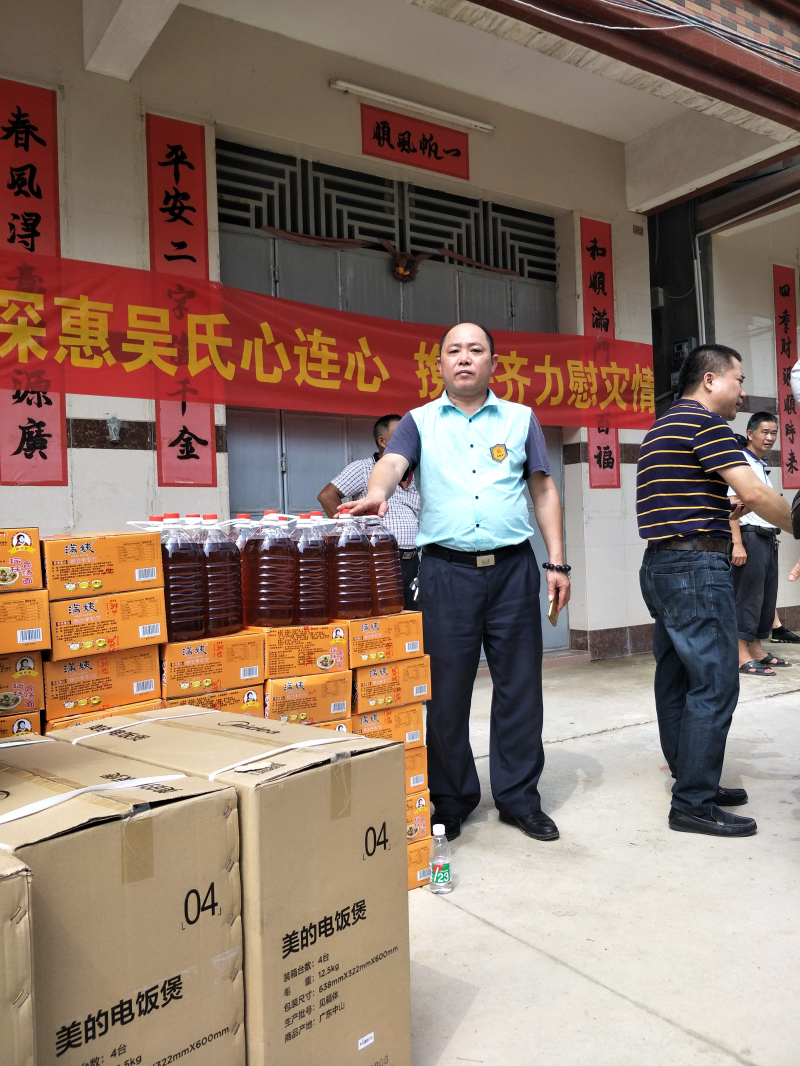 9月4日上午,深吴宗亲受深吴会会长燕平宗长和执行会长国强宗长的委托,分乘6台小车以及一台运送救灾物资的卡车,来到惠东,到达位于惠东县城关的吴氏宗亲会所,在这里,深吴宗亲受到了惠东吴氏宗亲会的宗长宗亲们热烈欢迎,深吴宗亲慰问了受灾的吴氏宗亲,向惠东受灾宗亲表达爱心。