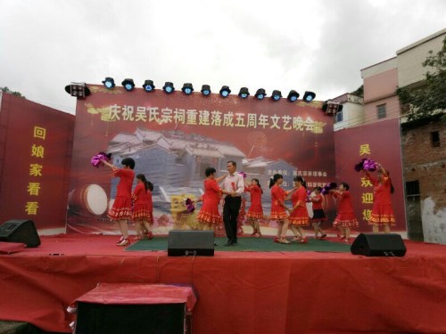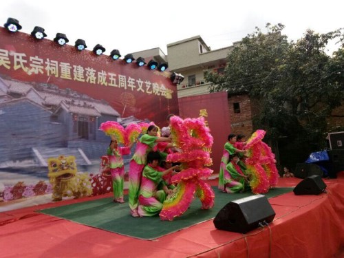 千官镇云霄桄榔坪吴氏宗祠宗祠建筑面积近五佰多平方,有篮球场舞台,祠堂面前有鱼塘近二亩面积。活动内容早上八点集体拜老祖宗,九点捐款活动和礼品发方,十一点半饮酒同庆,中年二点歌舞表演,晚上八点继续文艺晚会。