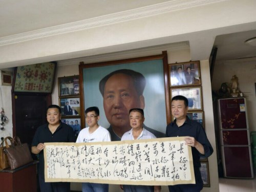 左起:河南吴氏文化研究会副会长吴建增、吴建辉、河南收藏家协会常务副会长王金平、河南收藏家协会副会长张恒,现场赠送毛体书法作品。