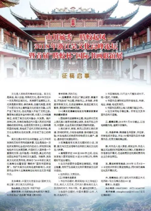 【征稿启事】——山川毓秀 腾蛟起凤 2018年浙江吴文化高峰论坛