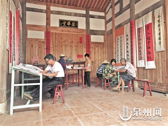 除了增设家风家训馆,德化有的老祠堂还设立农家书屋、老人活动中心等。桂阳乡桂阳村,昔日的古老祠堂“荣华堂”,如今已成为书香满盈的“农家书屋”。