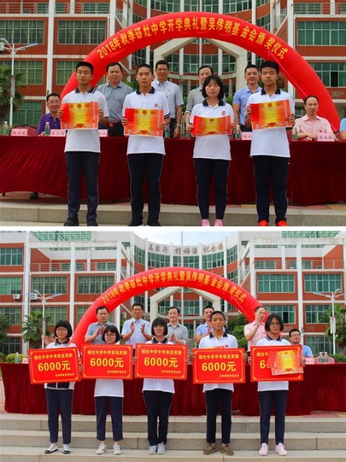 秋风送爽,金桂飘香,红叶绚烂,硕果芬芳!9月11日下午,磁灶中学隆重举行2018年秋季开学典礼暨吴伟明教育基金会颁发仪式。
