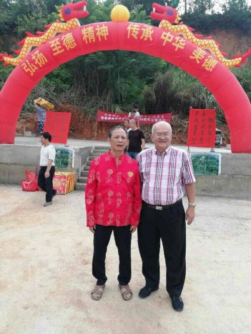 永定联谊会长煊会长和马来西亚武衷宗长(五四千一郎裔)合影,宗长不顾年事已高,不远万里回祖地参加祭祖,精神可嘉。