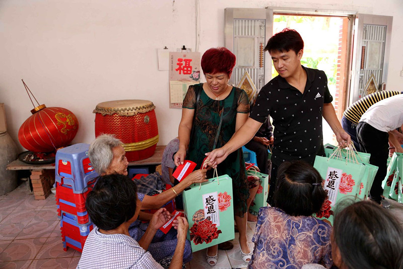 慰问活动中,天天食品有限公司董事长郑金妹一行来到乌牛垌村祠堂集中慰问了一批80岁的老人,向他们送上“爱心月饼礼盒”和慰问金。对身体不好或者腿脚不方便行走的老人,郑金妹一行亲自到他们的家中走访慰问,在老人家们中和老人们聊天拉家常,嘘寒问暖,切实了解他们的身体健康状况和生活情况。叮嘱他们要保重身体,快乐生活,希望他们在欢乐祥和的气氛中欢度中秋佳节。