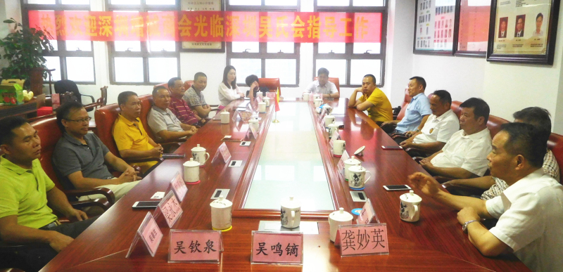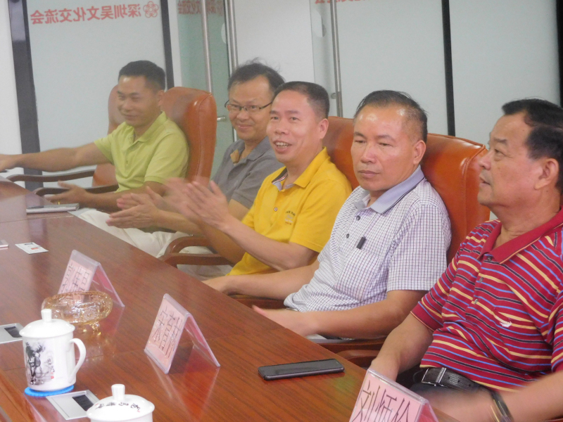 2018年9月17日下午,深圳增城商会的丘文坚先生、陈少锋先生、郭伟昌先生、宋育林先生、朱干聪先生、刘炳伦先生、梁永杰先生、何卫雄先生、陈沸丹女士、何思琪女士等嘉宾,受邀来到深圳龙华民治海韵大厦第十六楼的深吴会会所,深吴会吴燕平宗长、吴良辉宗长、吴松康宗长、吴修建宗长、吴同金宗长、吴钦泉宗长、吴裕军宗长、吴强宗长、吴春生宗长等热情地接待了贵宾,并请贵宾们参观深圳吴文化交流会,指导工作。