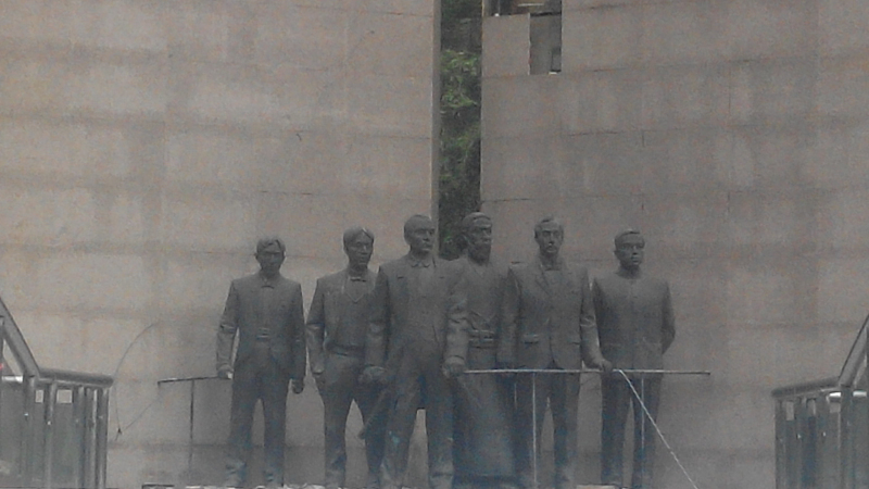 运送军火的雕塑下面是主题为“台北议事”的雕塑,表现孙中山在台湾与中国人以及日本人策划起义的情景,再住前走是主题为“联络海外”的雕塑,表现孙中山与菲律宾革命党接洽的事。现在说台湾是中国不可分割的一部分。其实据高晓松在《晓说》中介绍,当年郑成功攻下台湾之后,准备进攻菲律宾。如果郑成功进攻菲律宾成功了,那么现在,菲律宾将是中国不可分割的一部分。可是郑成功在刚准备进攻菲律宾时,就死去了,据称是因为郑成功的长子郑经与乳母通奸,恪守儒家信条的郑成功因此气病交加而死,从而没有进攻菲律宾。不过据称由于郑成功要进攻菲律宾的消息传到菲律宾之后,菲律宾的华人非常兴奋,立即举行起义,但很快被荷兰人屠杀,起义失败。