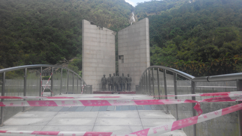 进入雕塑园,迎面是六个人的塑像,有介绍是孙中山等六人,其中一个是日本人,另几个是帮会首领或民间团体首领,塑像的主题是“激浪滔天”。由于塑像的左后方不远处也有一座群雕,所以来游玩的人,都冲这座群雕来了,这个群雕的主题是“同志仍须努力”,然后沿这个群雕往山上走,山路上也有山体滑坡的警示牌挡住。但是这个时间,天气晴朗,一般滑坡都是雨水催生的,所以大家也没在意,直接就上山了。连续看了几个群雕。