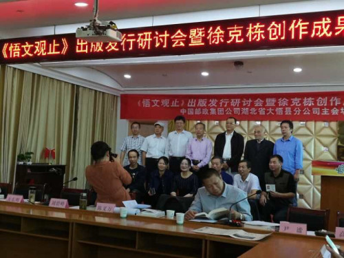 孝感市作协主要领导刘碧峰、方东明,大悟县党政领导陈义万、付波、何烨明,以及编创团队的专家、学者50多人出了会议。市、县领导在研讨会上分别就《悟文观止》从编辑到出版发行进行了高度点评,提出文艺创作要牢记使命,不忘初心,注重政治纪律、维护党的政权,在讴歌新时代的同时,传承红色基因,营造乡土文学,建设书香大悟,延续楚文化和弘扬大别山的民俗根脉。